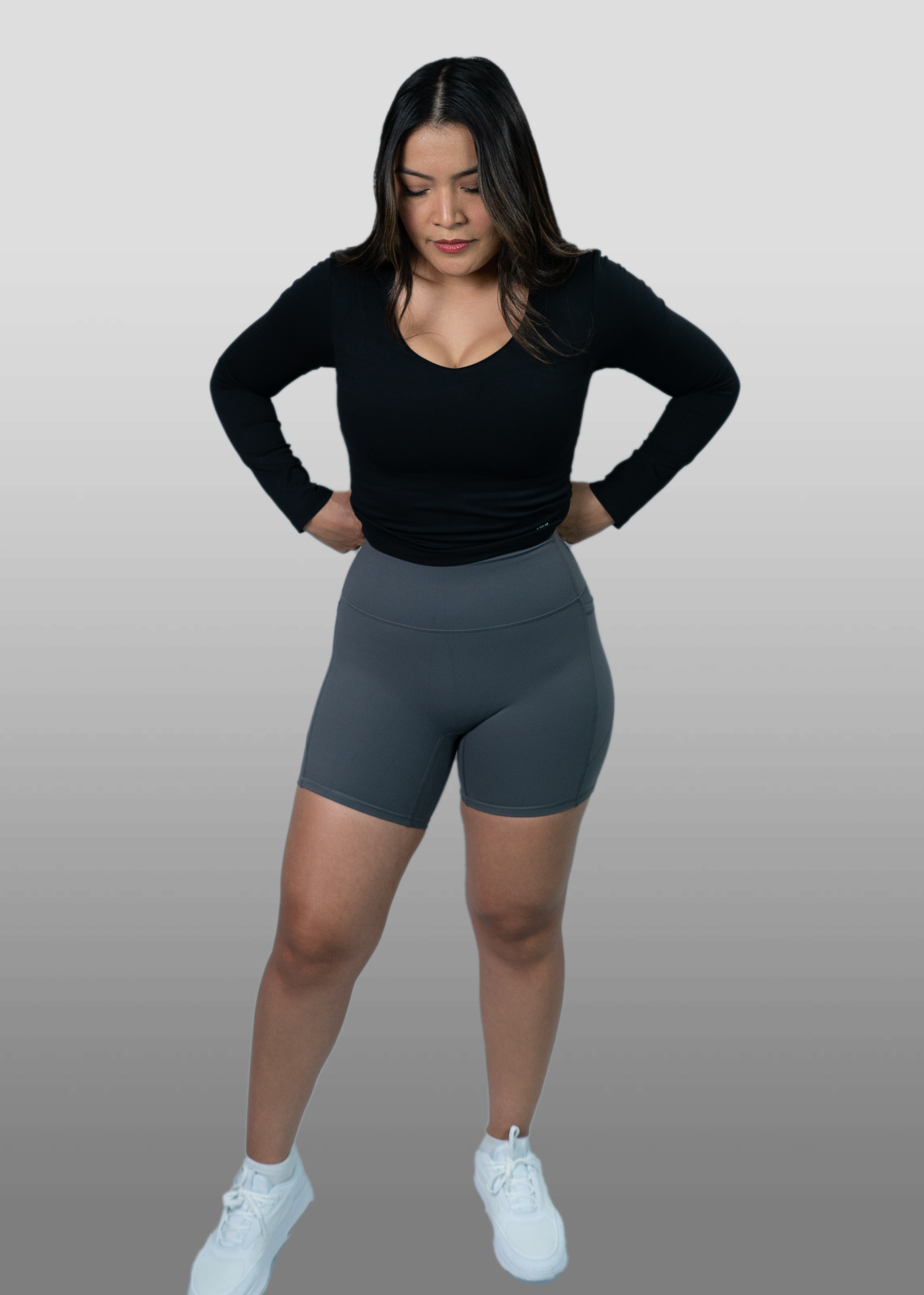 Buttery soft, versatile, fitted long sleeve top that contours to your body. Padding can be removed or changed to a bigger size.